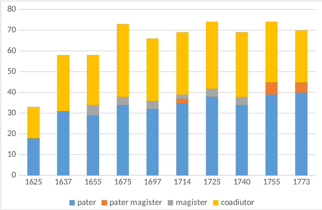Die Einnahmen des Professhauses spiegeln sich in seiner Größe wider: Im 18. Jahrhundert zählte es ständig mindestens 68–70 Mitglieder. Aber z.B. im Jahr 1711 hatte das Haus Schulden in Höhe von 5.900 Gulden, die ebenfalls durch Almosen zurückgezahlt wurden. Zeitweise gab es auch Schwierigkeiten bei der Versorgung von Gastmitgliedern (z.B. aus anderen Provinzen für kurze oder längere Aufenthalte).